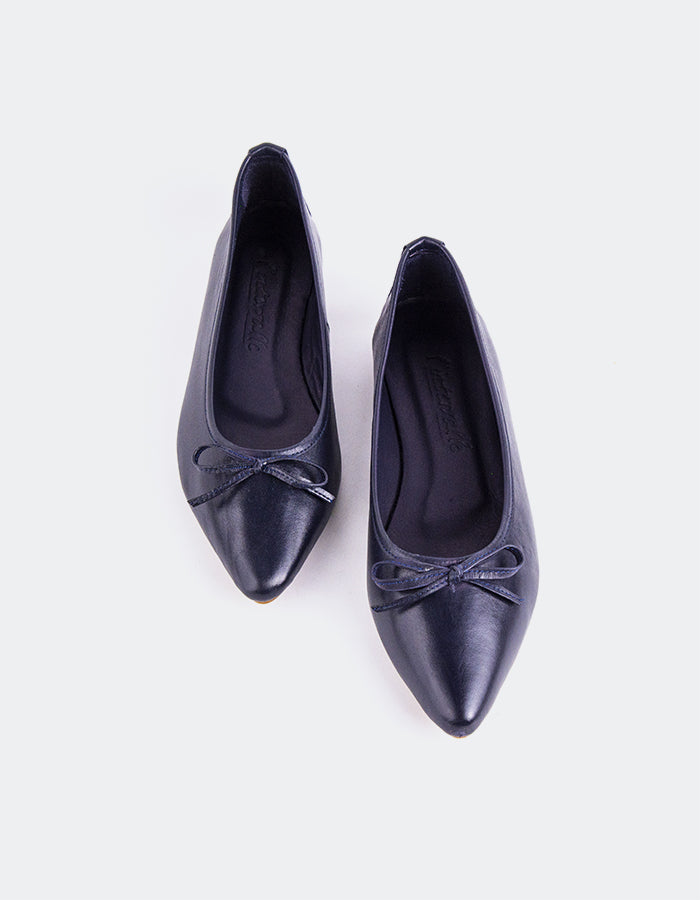 Zoom L'INTERVALLE Briar Women's Bow Tie Ballet Shoe Navy Leather