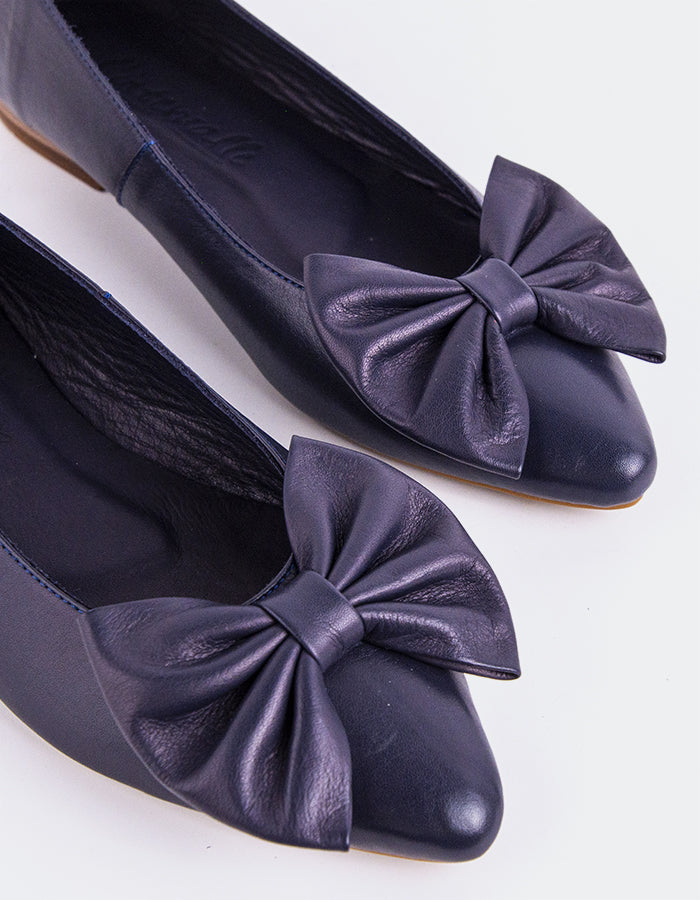 Zoom L'INTERVALLE Ulwin Women's Bow Tie Ballet Shoe Navy Leather