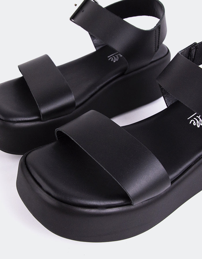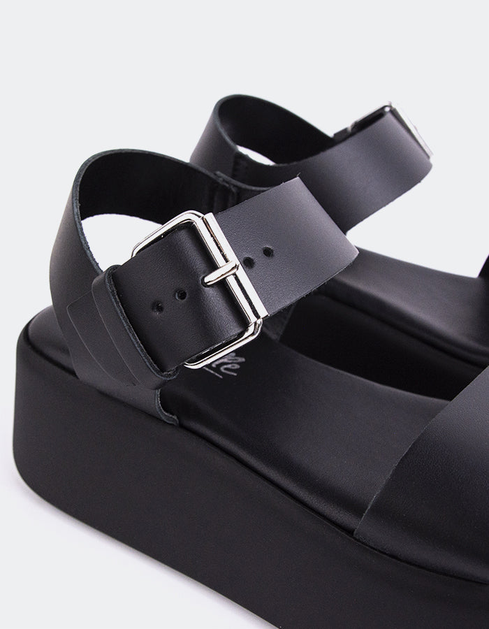 Zoom L'INTERVALLE Cocotte Women's Platform Wedge Sandal Black Leather (7082651615312)