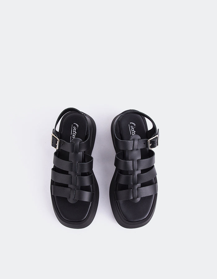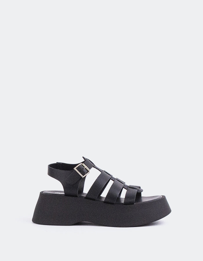 Zoom L'INTERVALLE Confident Femme Pêcheur Plateforme Sandale à talon compensé Noir Cuir (7081263857744)