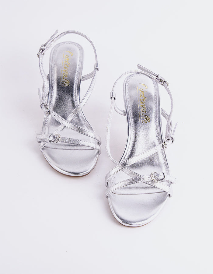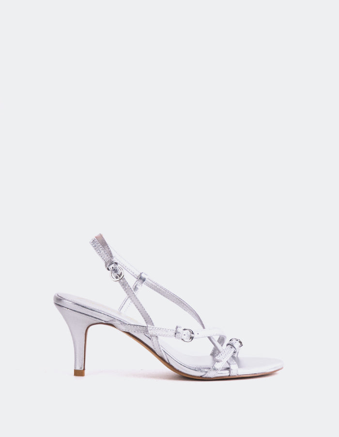 Zoom L'INTERVALLE Leiden Women's Buckle Strappy Sandal Silver Leather